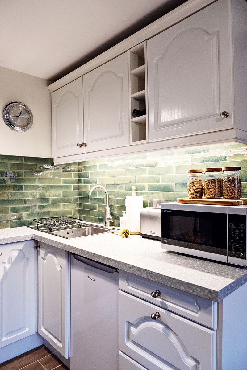 Decorated in soothing green tones, the interior invites you to relax and recharge. It’s a tranquil retreat where you can escape the hustle and bustle of daily life and embrace the peaceful surroundings.